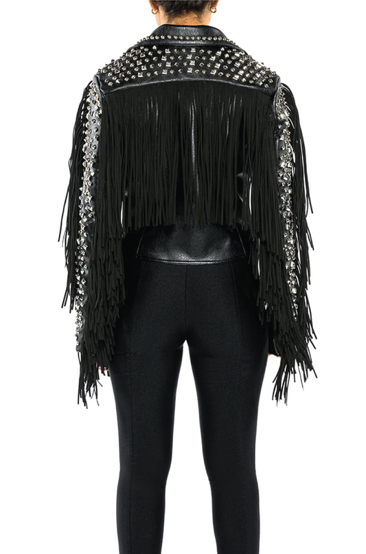 Azalea Wang Ryder Faux Leather Moto Western Jacket with Fringe & Studs