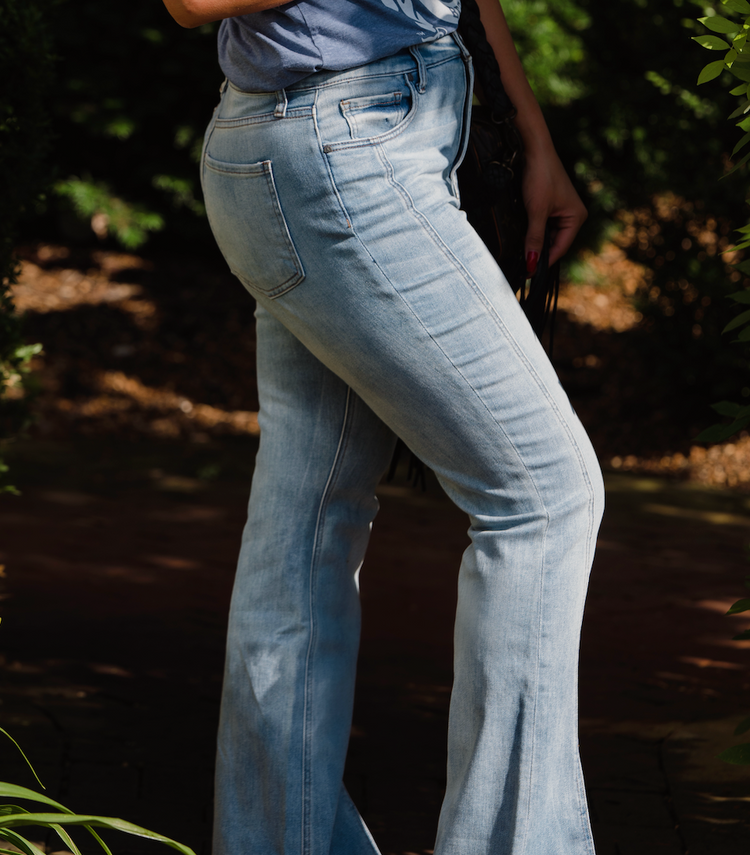 Flying Monkey High Rise Kick Flare with Uneven Hem