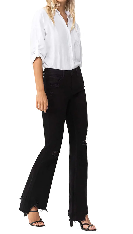 Flying Monkey High Rise Kick Flare with Uneven Hem